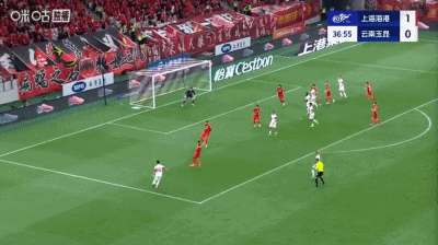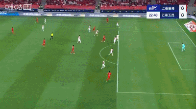 第37分钟,扳平比分,侯永永助攻,奥斯卡头球得分,云南1-1