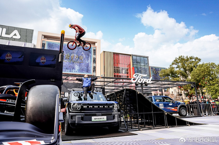 校园之外,南京路世纪广场上举办的“福特性能家族快闪”也在火热进行中。 活动自3月5日启动以来,已吸引大量车迷前来打卡体验。此前令人期待的神秘惊喜环节也终于揭晓:奥地利Red Bull签约的克罗地亚BMX小轮车骑手Marin Rantes,在快闪活动现场先后飞跃Red Bull战车以及车顶举升后高度近2.2米的福特智趣烈马,将气氛推向高潮。这一勇敢的挑战,不仅是对车手技巧与勇气的极限挑战,更是一场关于团队协作精神的致敬。